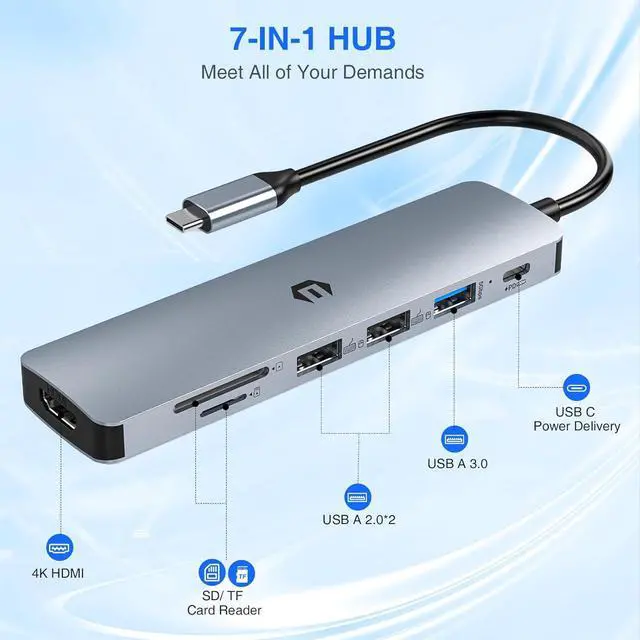 Exceptional Multiport USB C Hub: Experience the convenience of TOTU 7 in 1 USB C dock, offering 1 external video output with 4K@30Hz HDMI, rapid data transfer via the 1 USB A 3.0, 2 USB A 2.0 ports, and universal SD/TF card slots. Charge devices quickly with the 100W USB C PD port. Simply plug in your Type C device and play without needing external drivers. This adapter will seamlessly upgrade your laptop, tablet, or smartphone to connect with more peripherals.