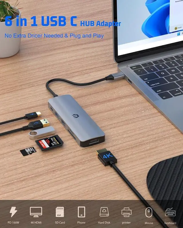 • [Versatile Multiport Hub]- Expand your USB-C device with ease. Features 4K HDMI, SD/MicroSD card reader, USB 2.0, and USB 3.0 ports. No additional software or drivers required.