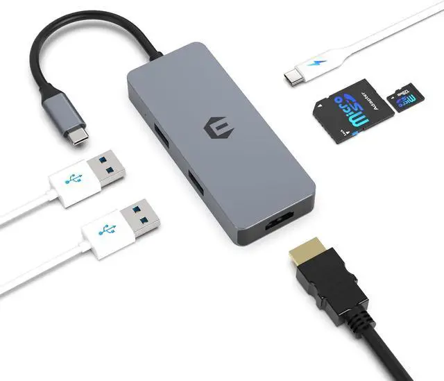 USB C Hub: The USB C hub is including 1*4K@30Hz HDMI ports, 1*USB-C PD charging port, 2*USB 3.0 ports and SD/TF card slot. It is an All in One solution. Plug and play, No additional software or drivers required.
