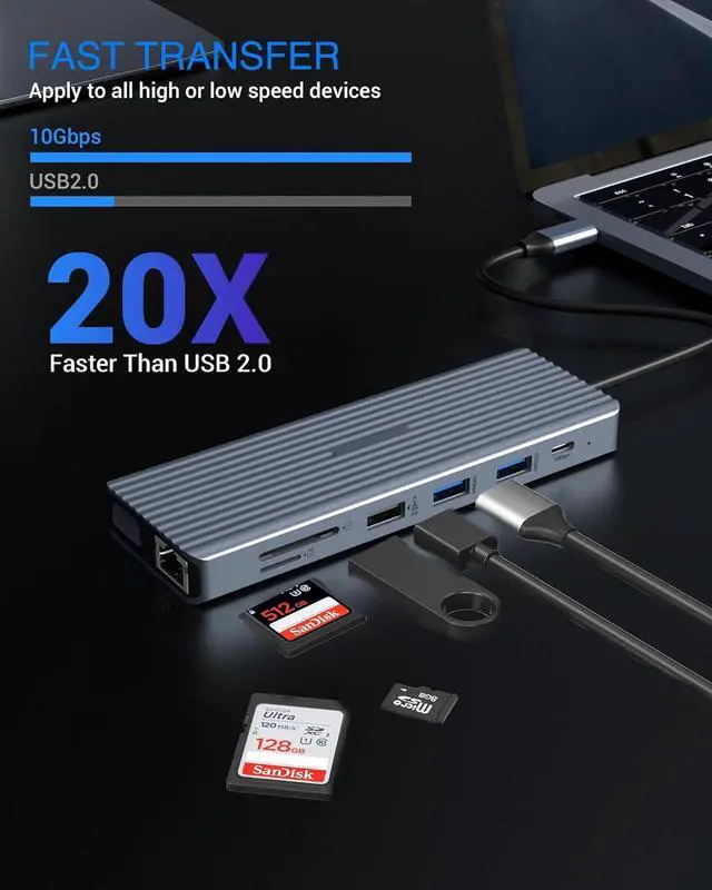 [Efficient File Transfer]- Transfer large files quickly with up to 10.0Gbit/s speed using USB C 3.1, compatible with USB 2.0/1.1. The SD/TF card reader allows fast hard drive reading and easy file transfer.