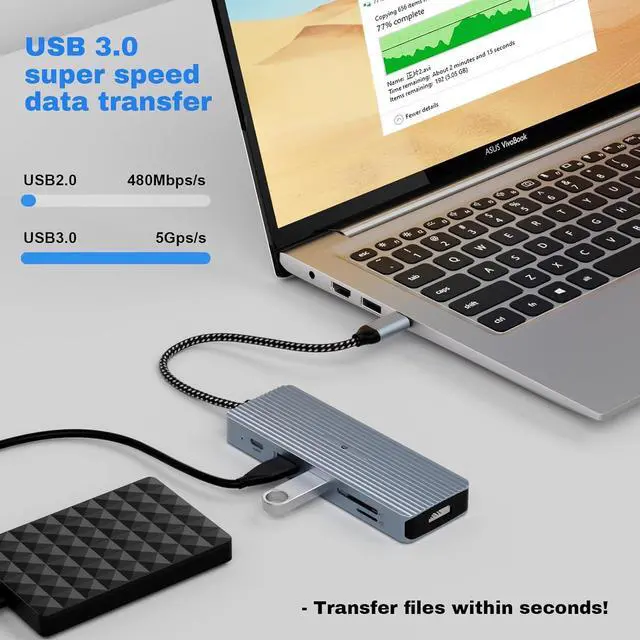 [Fast Data Transfer]- With USB 3.0 and USB C 3.0 ports, experience super-fast data transfer speeds of up to 5Gbps, allowing you to work more efficiently and save time.