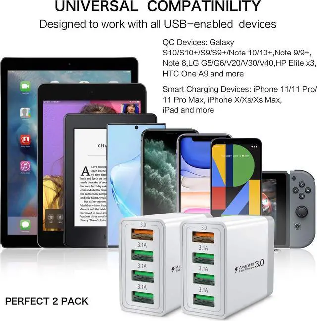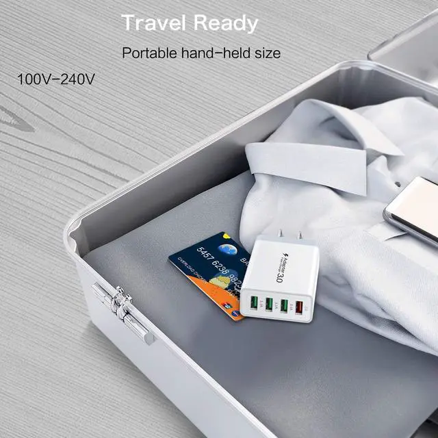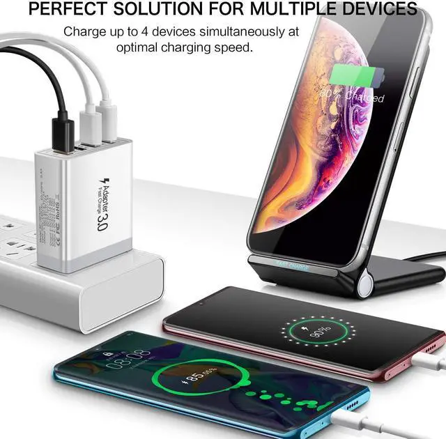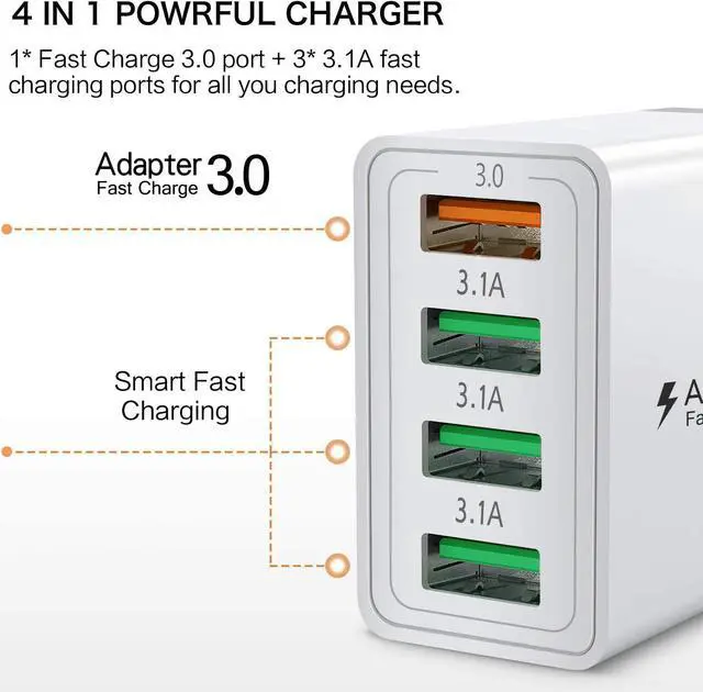 Multi-Device Charging: No need to prepare a set of USB chargers. This 4-port USB charger can meet all you charging needs. 1* Fast Charge port for fast Charging-enabled devices and 3* 3.1A fast charging ports automatically detect and adjust the fastest charge for your non-fast charge devices.