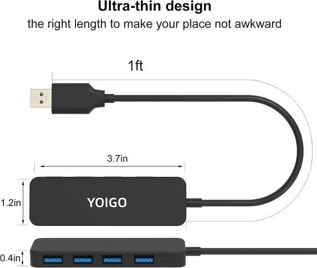 USB HUB 3.0,YOIGO Ultra Slim Multi USB Splitter,4-Port USB hub for Laptop,PC,Mac,Surface Pro, PS4, Flash Drive, Mobile HDD (1FT