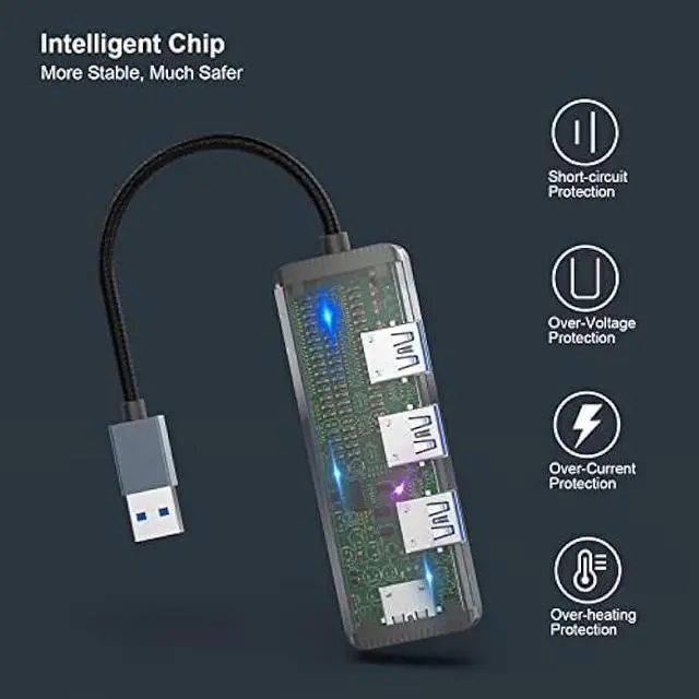 SuperSpeed Data Transfer: Sync data in seconds with this USB 3.0 Hub splitter. USB 3.0 slots provides you 5Gbps data transfer speeds and is 10x faster than USB 2.0. Backward compatible with USB 2.0, 1.1.