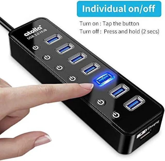 Simple Switch to Control- Equipped with individual on-off switches to control each USB port, atolla USB 3.0 hub saves the trouble of unplugging devices and help place them more rationally when you don't use them.