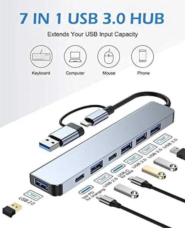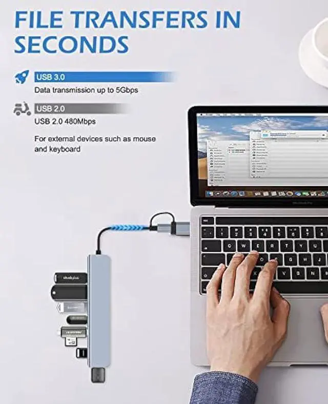 High-Speed Data TransferOur 7-in-2 Data Hub is equipped with USB 3.0 technology, capable of transferring data at speeds of up to 5Gbps. This means you can transfer an HD movie in seconds, saving you time and hassle.