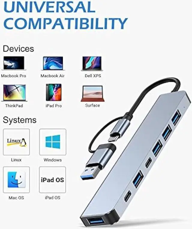Great Compatibility and Easy to Use Fully plug and play without any drivers. Wide Compatible with MacBook Pro/MacBook Air/iPad Pro/Chromebook/Windows almost all USB A USB C devices.