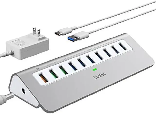 SuperSpeed Powered USB Hub: Intpw USB 3.1 hub equipped with 7 super speed USB 3.1 (USB 3.2 Gen 2) ports allows you expend multiple USB port for laptop and transfer files at speeds up to 10 Gbps, twice the data transmission rate of conventional USB 3.0 in theory. The USB hub for laptop gives you the opportunity to simultaneously connect a large number of USB peripherals such as keyboards, mice, card readers, and more USB devices.