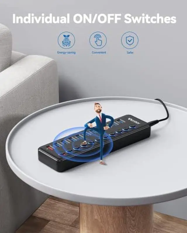 Individual On/Off Switches: USB hub powered is designed with individual on/off switches, you can turn the power on and off whenever you choose without unplugging the equipment. Besides, Each port includes an LED light so you can check the power status.