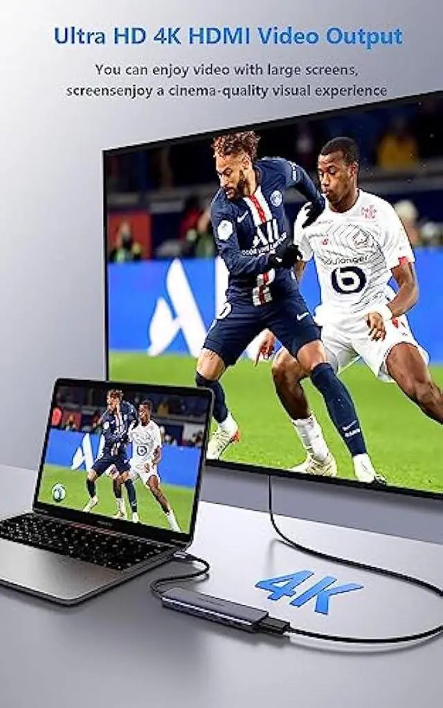 4K HDMI to USB C The HDMI port allows you to mirror or extend the display of your phone/laptop/tablet to HDTV, monitor or projector in resolutions up to 4K@30Hz, enjoy the large screen fun. Ideal for conference presentations, gaming or home theater.