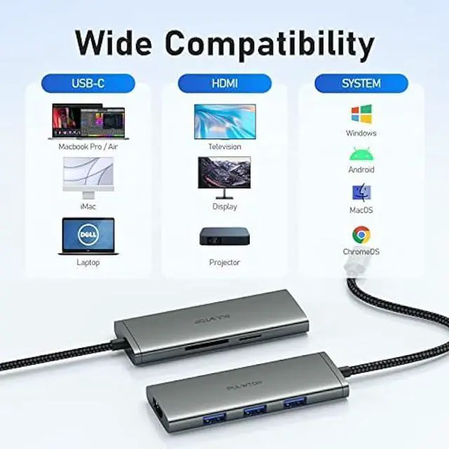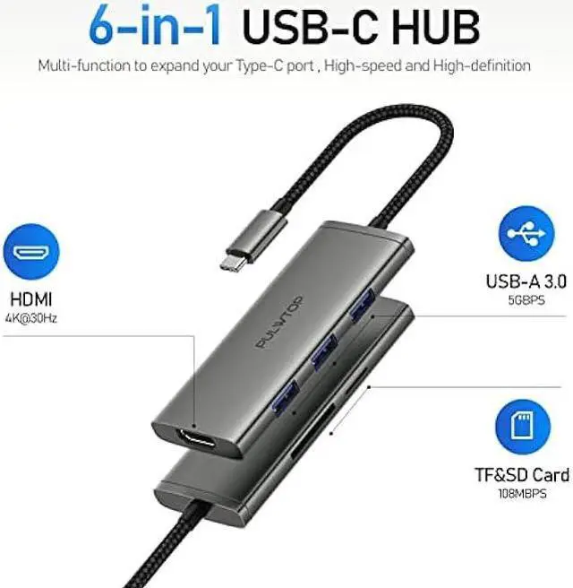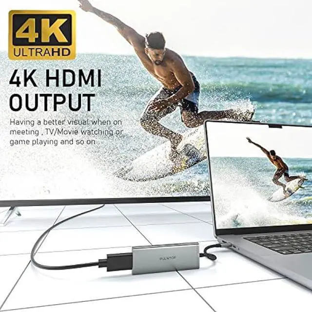 4K Ultra HD Enjoyment: USB HUB with HDMI mirrors or extends your screen to an HDTV, monitor or projector via the HDMI port, supporting up to 4K 30Hz resolution, ideal for conference presentations, gaming or home theater with a great visual experience, giving you clear visual enjoyment