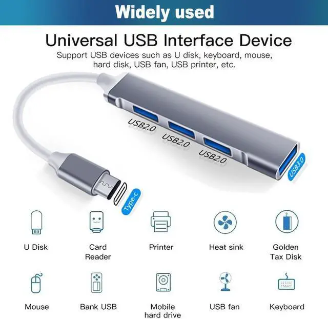 Enhance your connectivity with the Apiemo 4 Port USB C HUB. This versatile hub offers seamless integration with your devices, featuring a Type C to USB 3.0 connection. With 2x 2.0 ports, this ultra-slim portable splitter card reader adapter is designed for MacBook Pro, iPad Pro, XPS, Pixelbook, and more.