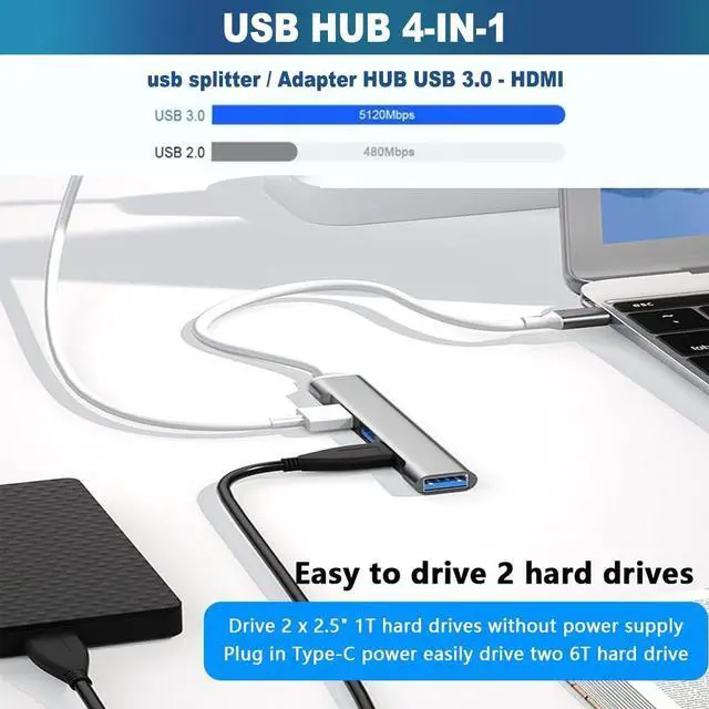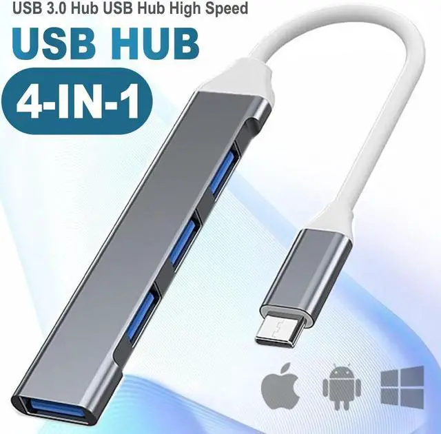 • 4 Port USB HUB, Type C to USB 3.0, 2x 2.0 Ultra Slim Portable Splitter Card Reader Adapter for MacBook Pro, iPad Pro, XPS, Pixelbook, and More