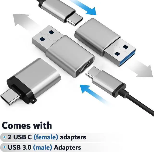 WIDE COMPATIBLE: The unique USB C adapter has perfectly combined the various functions you need. Plug and play; no need for a driver. Supports 3 ports working simultaneously. It also included +1 USB C (male) to USB 3.0 (female) Adapter, +2 USB C (female) to USB 3.0 (male) Adapters.