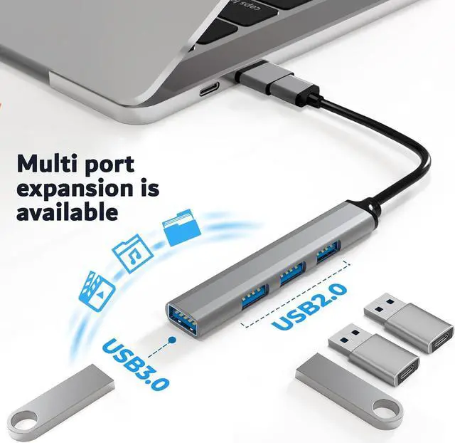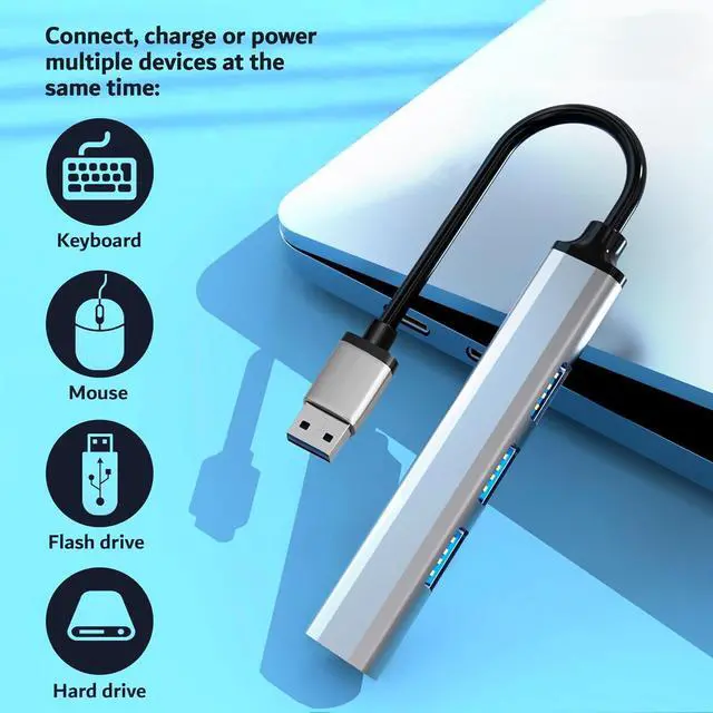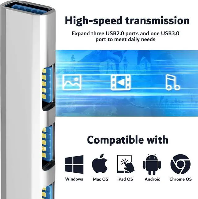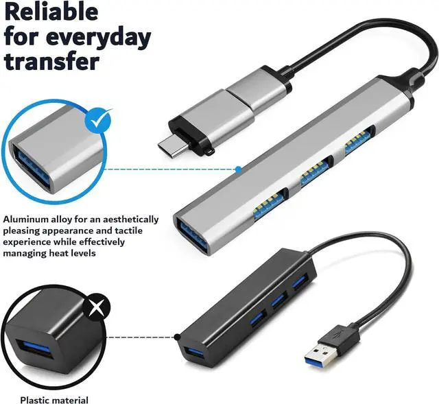 Rapid Data Transfer: Enjoy lightning-fast file transfers thanks to USB 3.0 & USB 2.0 technology. Whether you' re transferring documents, photos, or videos, this USB hub ensures you can do it quickly and efficiently.
