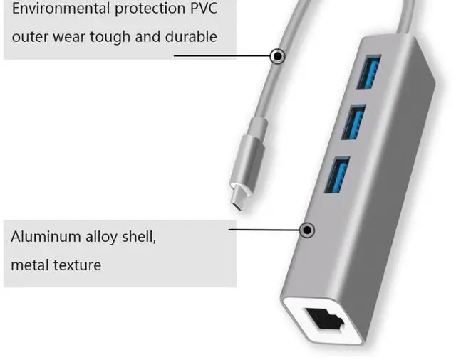 Type-C to RJ45 external Gigabit network card + 3.0 HUB computer converter dock