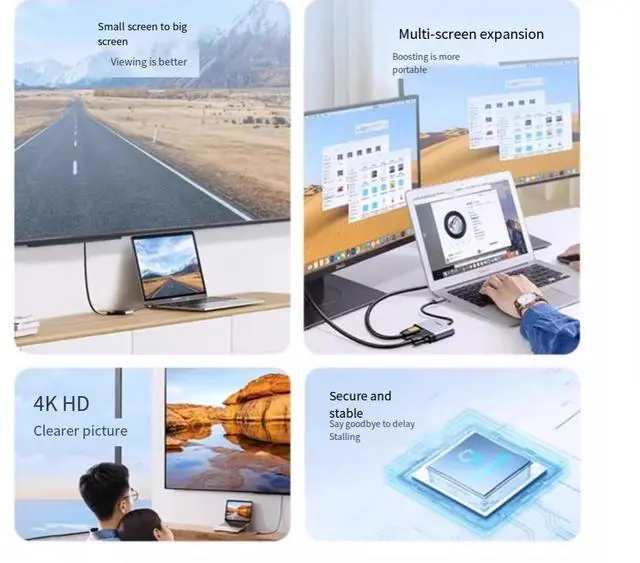UGREEN 4-in-1 Typec to HDMI+VGA+PD+USB3.0 Extension converter Adapter External laptop Mobile iPad tablet connected to TV projector usb multi-function projection display