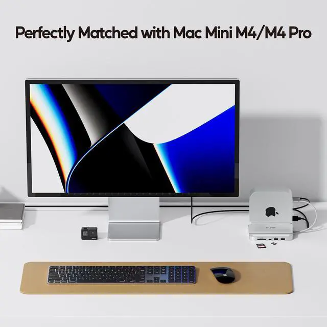 (5) VERTICAL MAC MINI M4 DOCK - Finished with silver sleek aluminum construction, both a Mac Mini M4 stand and USB-C Mac Mini docking station, making the USB-C hub feel like a natural extension accessories of your Mac Mini M4. Specially designed for Mac Mini M4/ M4 Pro 2024 to expand the connectivity and extend memory, making your work or entertainment easier and more plentiful than ever