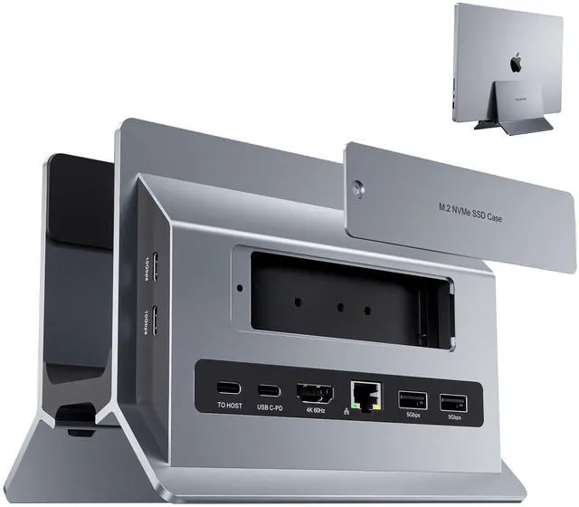 NOTE: SSD NOT included. Our vertical laptop docking station supports SSD expansion up to 2TB and transfer speed up to 10Gbps. Compatible with PCIe NVMe M. 2 SSDs in sizes of 2230/ 2242/ 2260/ 2280. Easy to expand the external hard drive to meet the insufficient storage needs of Mac Mini, Macbook and other USB-C laptops.