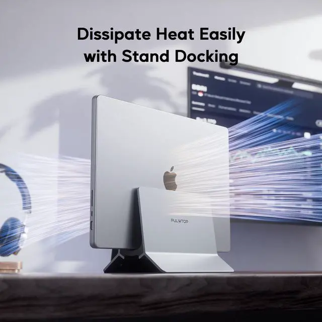 NOTE: NOT compatible with Mac Mini M4/M4 Pro 2024. Not only meet the needs of memory expansion and comprehensive connectivity, this macbook docking station stand with SSD enclosure also can be used as a laptop stand, allowing you to place your laptop horizontally or vertically on the desk, space-saving and keep your work desk tidy. Compatible with Macbook M1/M2/M3/M4, MacBook Air, Mac Mini, MacBook Pro, laptops with USB-C port that supports functions of data transmission, video and charging