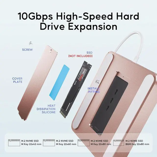 imac accessories support M.2 SSD: usb c hub allows you to expand an external hard drive through this imac hub to expand the storage of iMac to meet the different needs of iMac storage, compatible with M.2 NVMe SSD or M.2 SATA SSD, the maximum Support 2TB memory, transfer speed up to 10Gbps, and easy to install, it is an essential accessory for imac