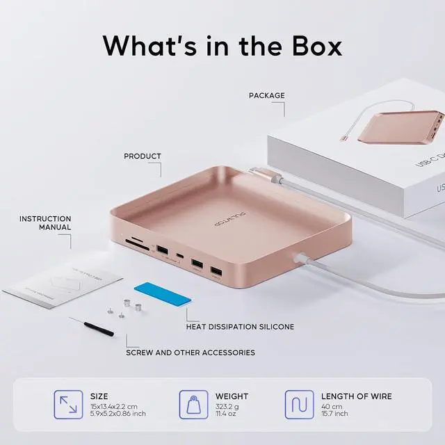 Integrated design: The usb c docking station perfectly fits the imac, all in one, and the body is slim and compact, which can keep your desktop clean to the greatest extent, the SSD is easy to install, and the built-in design allows your imac to expand While maximizing the sense of fashion in the space