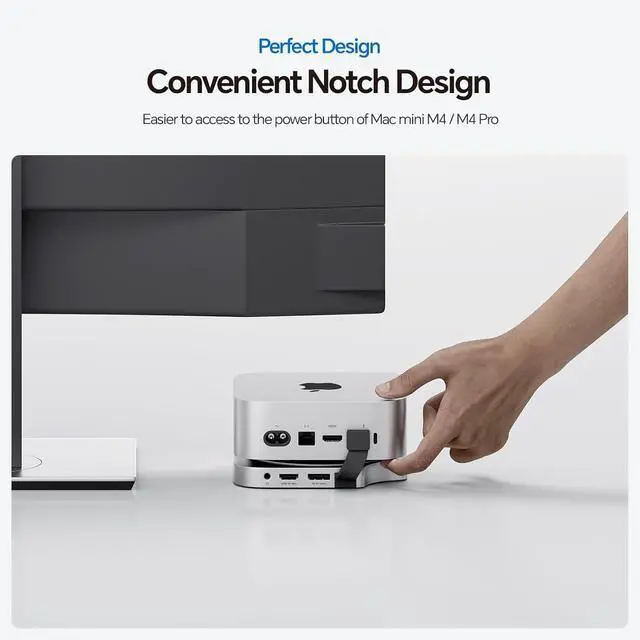 EXCLUSIVE DESIGN - Finished with sleek, slim aluminium construction with rounded, elegant concave arc design, making the usb-c dock & desk mount to feel like a natural extension of your Mac Mini M4 2024 and easy to access to the power button on the bottom of the Mac mini M4/M4 Pro. The anti-slip ring and 4 anti-slip silicone pads are applied to keep your mac mini stable on the desktop. Compatible with M4/ M4 Pro Mac Mini, 2024 Mac Mini