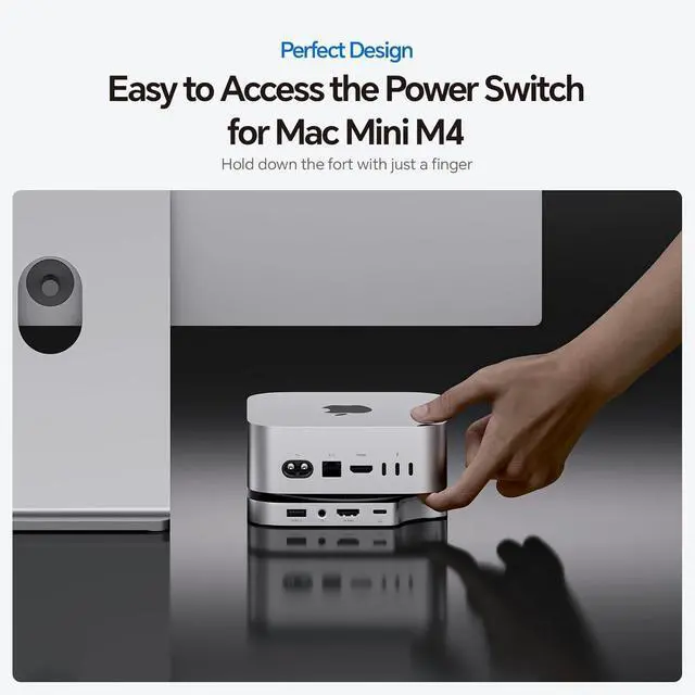 Designed for Mac Mini4 and M4 Pro 2024Designed to feel like a natural extension of your M4 Mac mini and easy to access to the power button on the bottom of the Mac mini M4/M4 Pro. It also works with USB-C laptops.