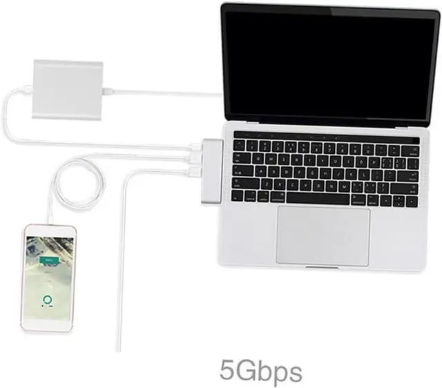 Hub: accessing your media is easy with the hub- and no drivers are required! type- c USB 3.0 5 in 1 hub adapter charging data sync reader
