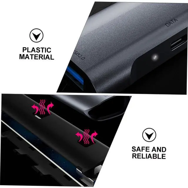 5- in- 1 Hub Adapter It is made of good quality aluminum and plastic material, anti-slip and scratch- , durable to use.Portable Data Hub This 5 in 1 hub provides multiple USB ports for mouse, keyboard, USB drive, portable hard drive and other USB device, very convenient for working on or phone