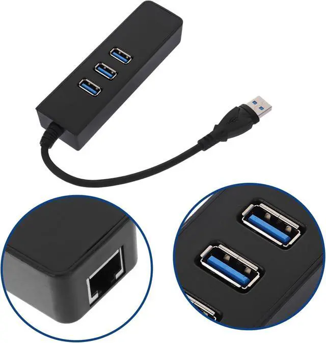 USB 3.0 hub-- 3-in-1 dual functionality: three USB 3.0 ports and one 1000m gigabit ethernet adapter.