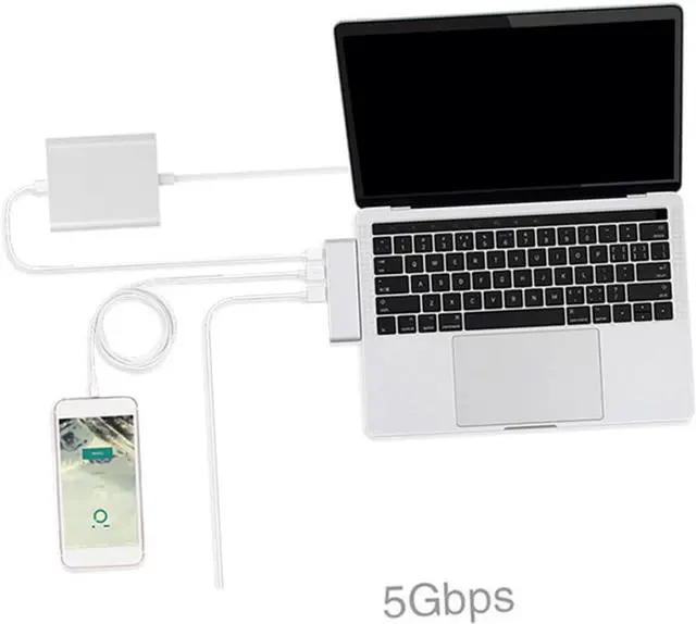 • USB adaptor-- accessing your media is easy with the hub- and no drivers are required! type- c USB 3.0 5 in 1 hub adapter charging data sync reader