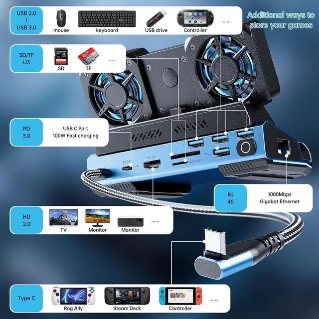 Widely Compatibility:Compatible with Steam Deck OLED,Steam deck,ROG Ally,Legion Go,Switch,laptop,iPad,Android,phones and other devices built-in USB C port.