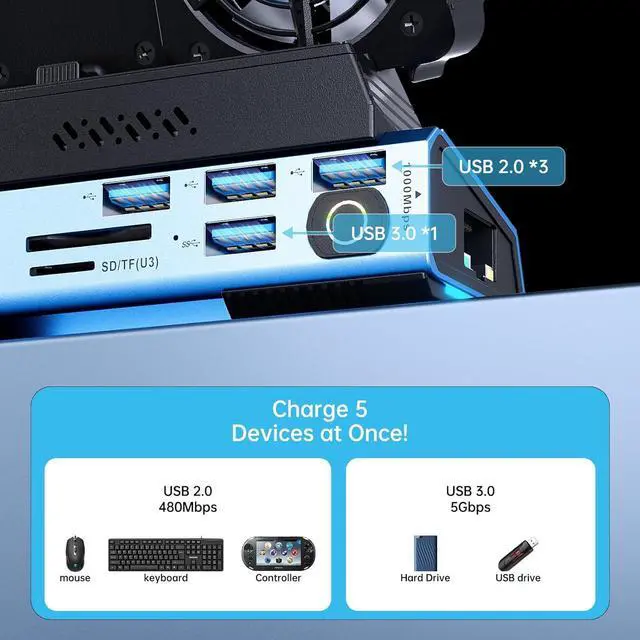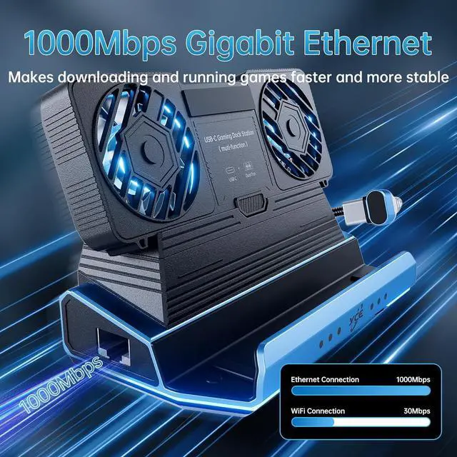 Rapid heat dissipation: This New docking station ,you can take off the cooling fans when you don't need it,and you also can adjust the fan speed in 3 speed. build-in colorful LED Atmosphere lights in fans and docking bottom,it can enhance your gaming experience.