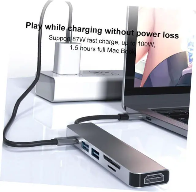 Gadpiparty 2pcs Type-c Multifunction Hub Adapter for Laptops and Type Pd Fast Charging USB Extension for