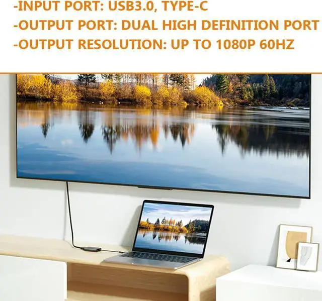 Dual high-definition screen display: connect two monitors for dual high-definition screen or extended displaying mode, boosting productivity,usb port hub,usb adapter for laptop