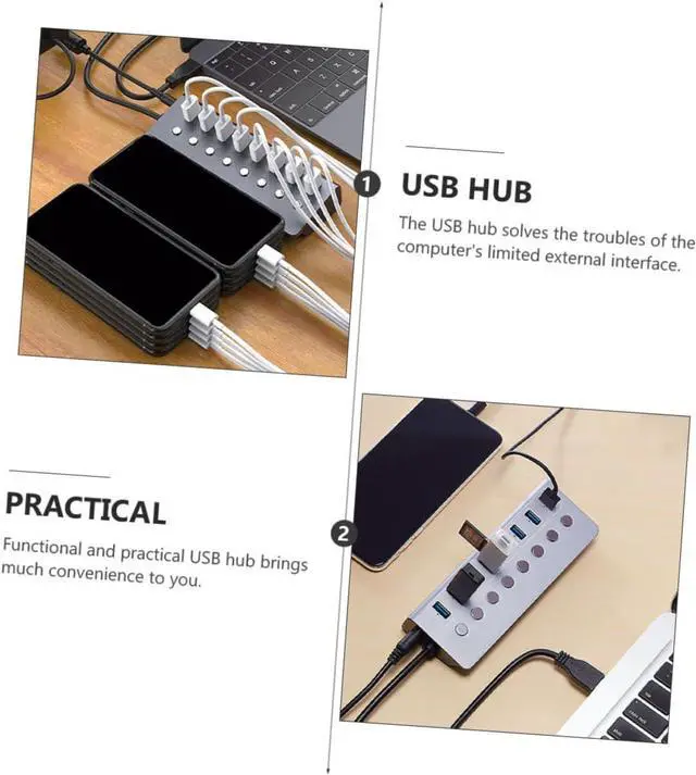 7-port USB 3.0 hub: made of aluminum alloy material, it is durable and sturdy for a long time.