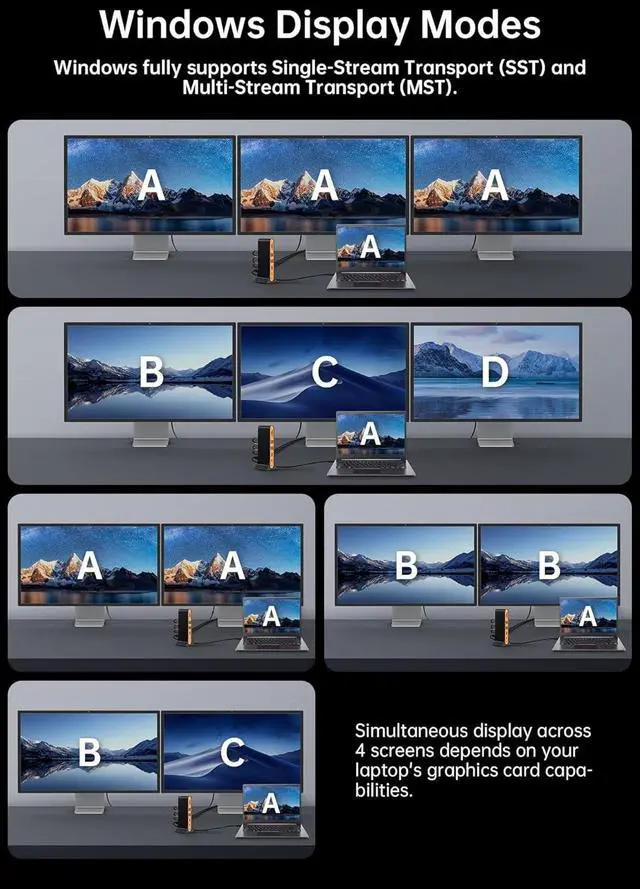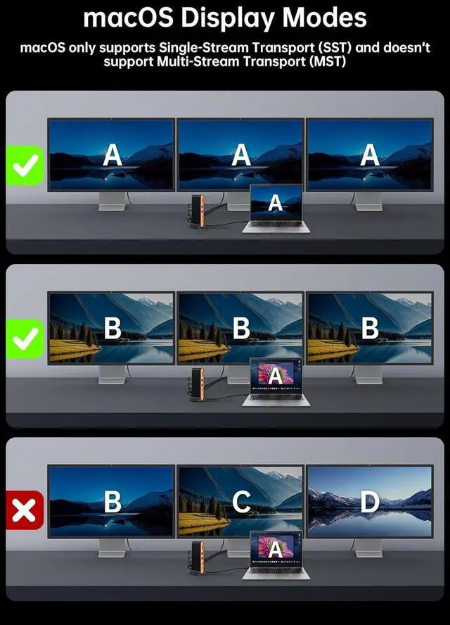 BOOST PRODUCTIVITY WITH TRIPLE MONITOR SUPPORT Maximize your workspace efficiency with triple-monitor adapter. Seamlessly connect up to three external displays with 8K@30Hz DisplayPort and dual 4K@60Hz HDMI ports, making it the ideal docking station dual monitor solution for MacBook and Windows laptops.