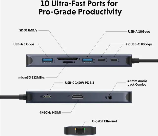 Transfer Data at 2X Speeds with 10Gbps USB 3.2: Enables lightning-fast data transfer, allowing users to move large files from any portable storage drive, backup data, and sync devices in a fraction of the time compared to traditional USB connections, increasing productivity and efficiency.