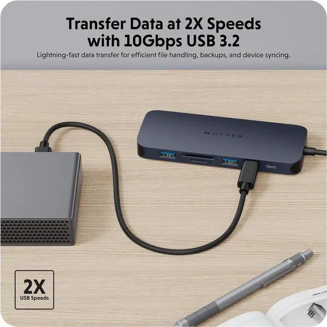 Extended 4K60Hz Monitor Support for Mac, PC, and Chromebook: Enhance your productivity and multitasking capabilities with Hyper's travel accessories. By providing a spacious and immersive workspace, this USB-C hub allows users to simultaneously view and work on multiple high-resolution content, such as videos, images, documents, and applications, with smooth and crisp visuals.