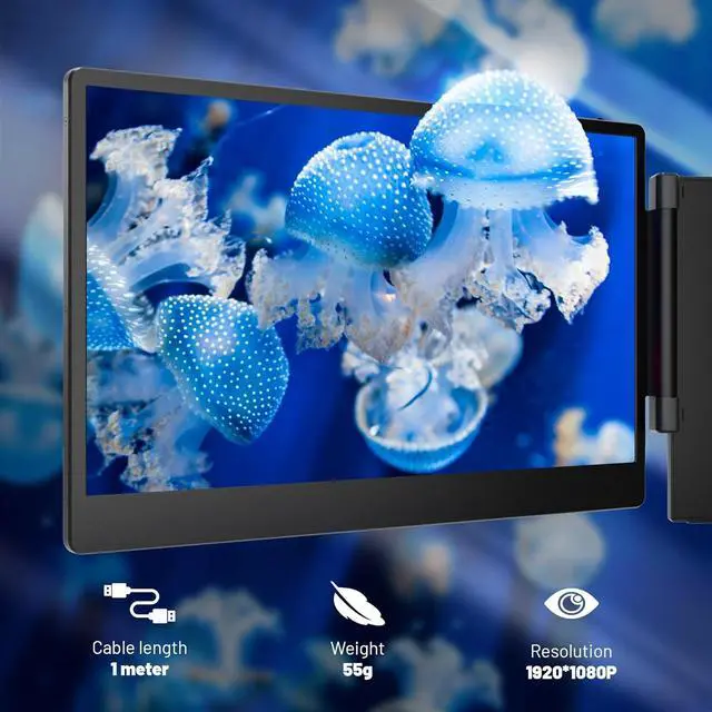 2 in 1 Type-C Adapter: The Monitor Adapter is equipped with 2 Type-C ports, 1 USB-A port. Cable length: 1 meter, Resolution: 1920*1080P, H5-H weight: 55g