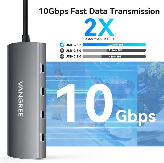10Gbps USB-C & USB-A 3.2 DATA TRANSFER: This USB C Hub can synchronize data through 3 USB-C & 2 USB-A 3.2 ports with 10Gbps data bandwidth, which can transfer and backup data for your external devices more efficiently.