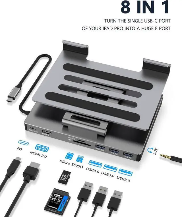 Massive Expansion: Turn your iPad Pros single USB-C port into a huge 8 ports. With HDMI port, a USB-C PD port, 3.5mm headphone jack, 3 USB 3.0 port, and an SD/microSD card reader, you have everything youll ever need.