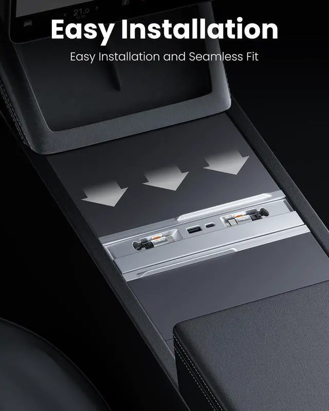 Easy Installation and Seamless FitFasgear USB hub for Tesla Modle 3 Highland 2024 can be installed into the car center console by pushing into the sliding rails of the central control / pushing the docking station to the end cup holder / plugging in the cigarette lighter and connecting the power. By the seamless fit, Tesla USB docking station looks like it is built into the car.