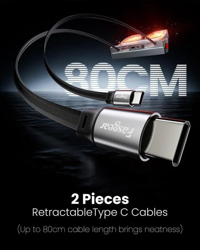 2 Pieces Retractable Type C CablesOur Tesla Model 3 accessories USB hub comes with 2 pieces retractable type c cables. Maximum retractable 80cm length can satisfy the daily charging needs for the driver seat and passenger seat. Thus, our car hub can save you from finding charging cables and bring neatness. Note: The total 80cm length might not satisfy the back seat passenger's playing while charging.