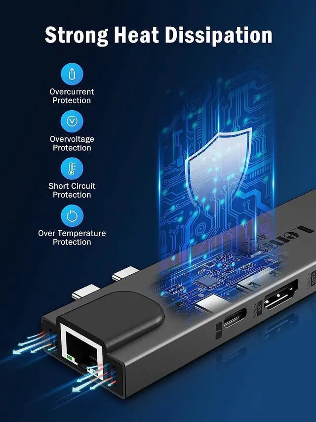 Plug-Play + Strong Heat Dissipation + Portable Size: Aluminum USB C docking station plug and play without drivers, settings or software. Built-in intelligent microchip and a variety of protection systems to prevent overcurrent, over-voltage, short circuit and high temperature, to ensure the security of file transfer and storage. Aluminum material dissipates heat better. Usbc hub portable size: 5.3 * 1.3 * 0.6in, suitable for pocket, laptop bag