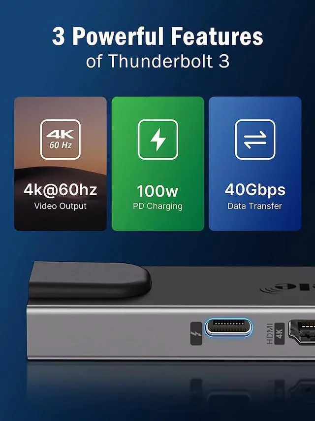 Super Speed SD/TF Card Reader & Thunderbolt 3 To make Macbook access files from SD/TF card reader, quickly view your photos or videos file. Support simultaneously read and write speed of 104MB/s. Thunderbolt 3 Data transfer speed up to 40Gbps, support fast charging power up to 100W and DP Alt mode.