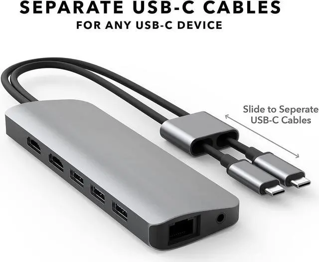 [ Works with Any USB-C Device ] Slide back to separate USB-C cables to connect to any USB-C device as a 9-port USB-C Hub (with 4K60Hz HDMI) or USB-C to 4K60Hz HDMI adapter.