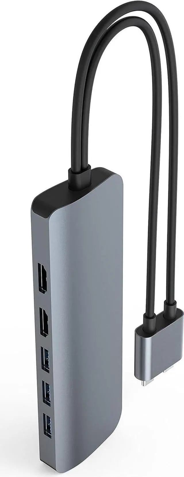 [ 10-Port USB-C Hub for MacBook Pro/Air ] Turns two USB-C ports into 10 ports with 2 x 4K 60Hz HDMI, 3 x USB-A, Gigabit Ethernet, MicroSD/SD, 60W USB-C power delivery, and a 3.5mm audio jack.