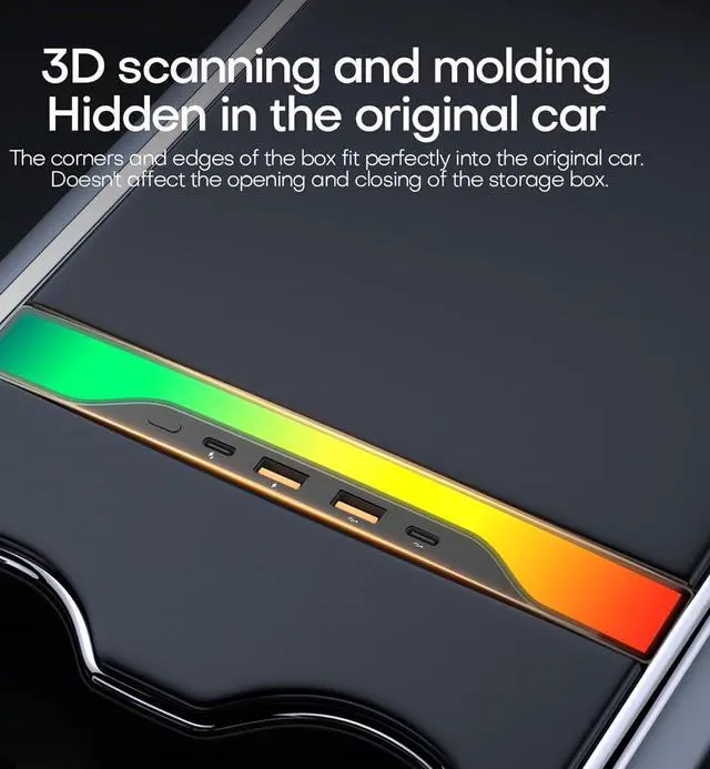 Precision Molding: Using 3D scanning and molding technology, the USB hub is sized to fit perfectly in the glove box of the Model 3 and Model Y, with no gaps to hide dirt and no wobble